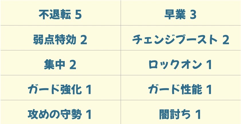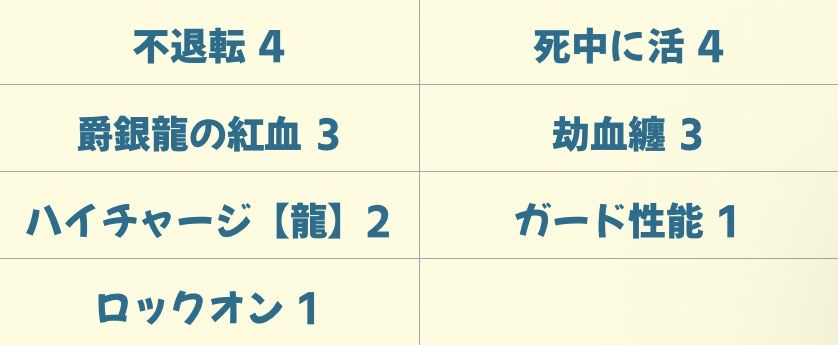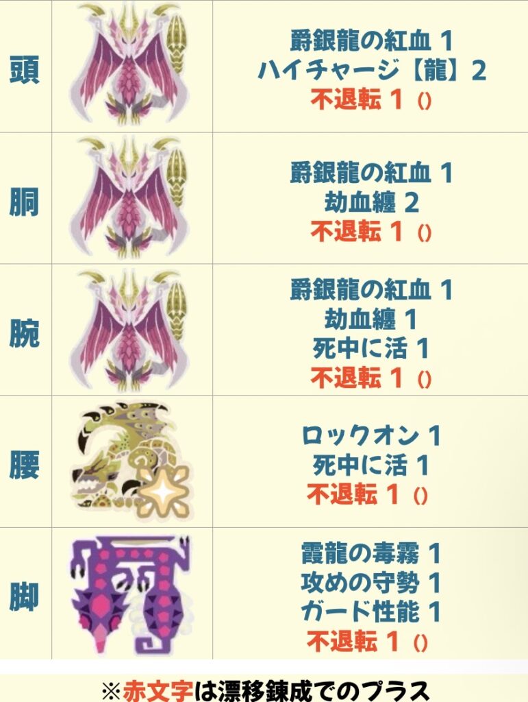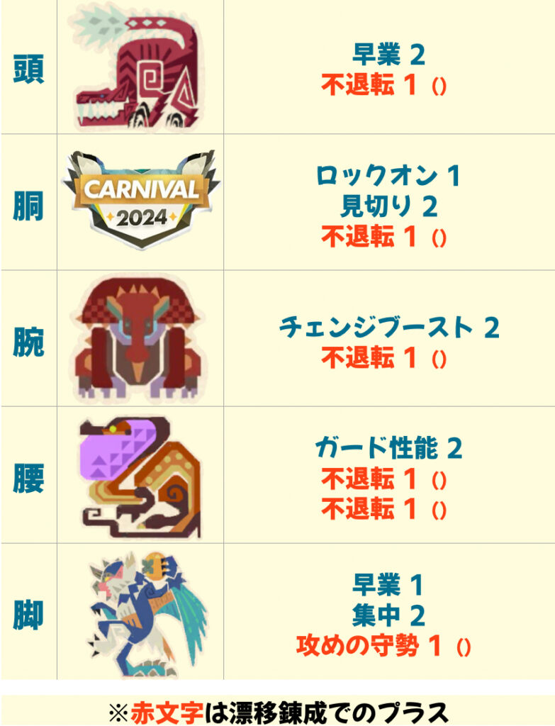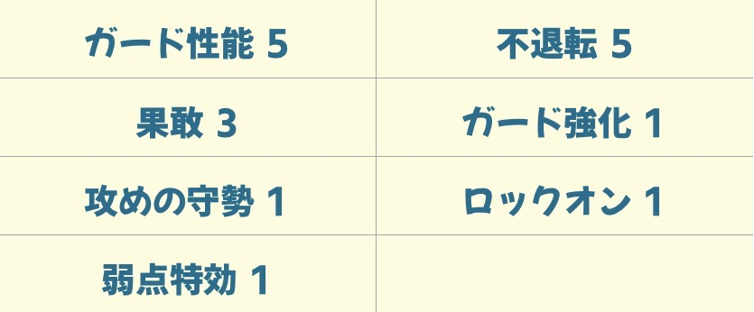 武器の「凶会心Lv1」と組み合わせるように組んでるので、下記の「凶会心」のLvは実際には+1となります。
