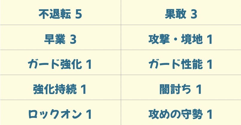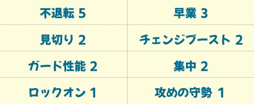 忘れっぽいので、戦闘力付きでここにメモっておきます。