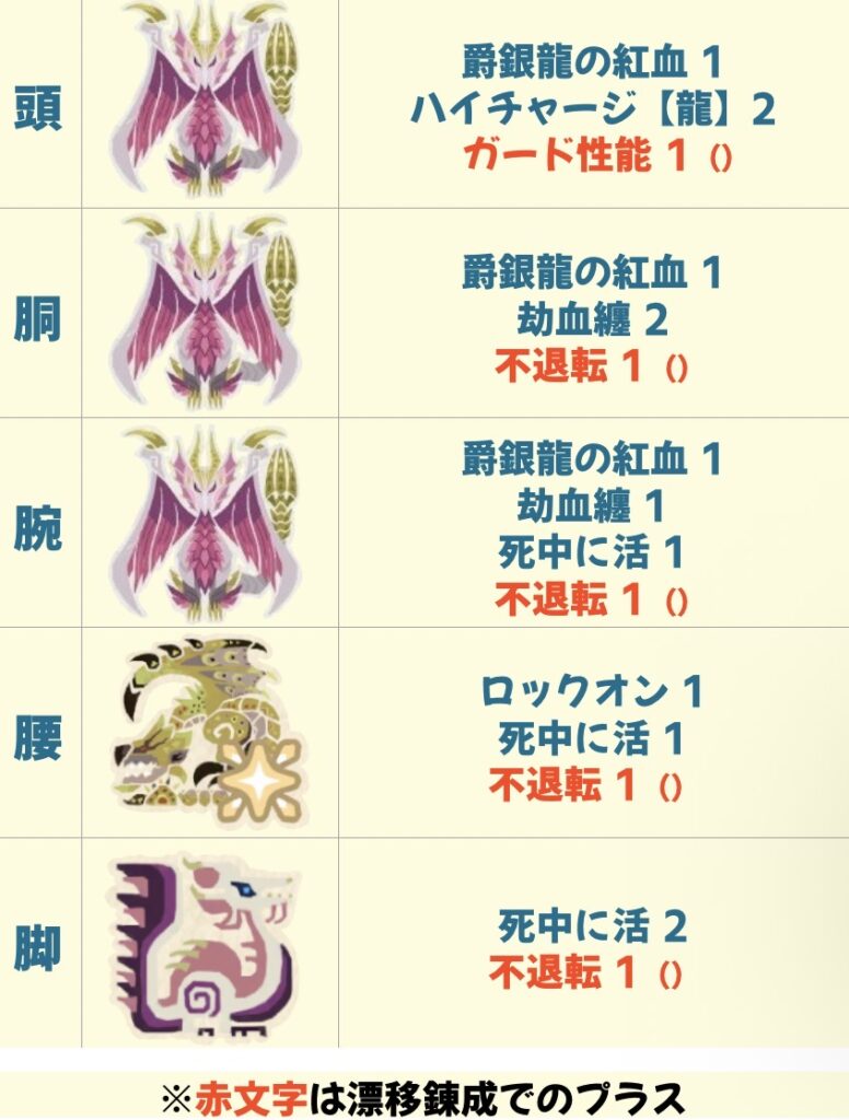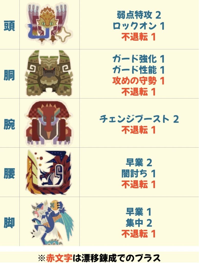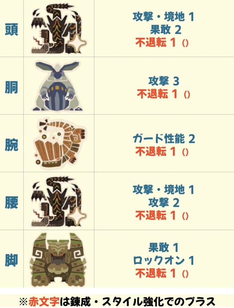 ここには主に、勇猛なしの属性汎用装備(火・水・氷・雷・龍 共通)を載せておきますが…。
