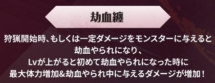 ここで気になるのはやはり、新スキル「劫血纏」と、それに関連する新たな状態異常「劫血やられ」。