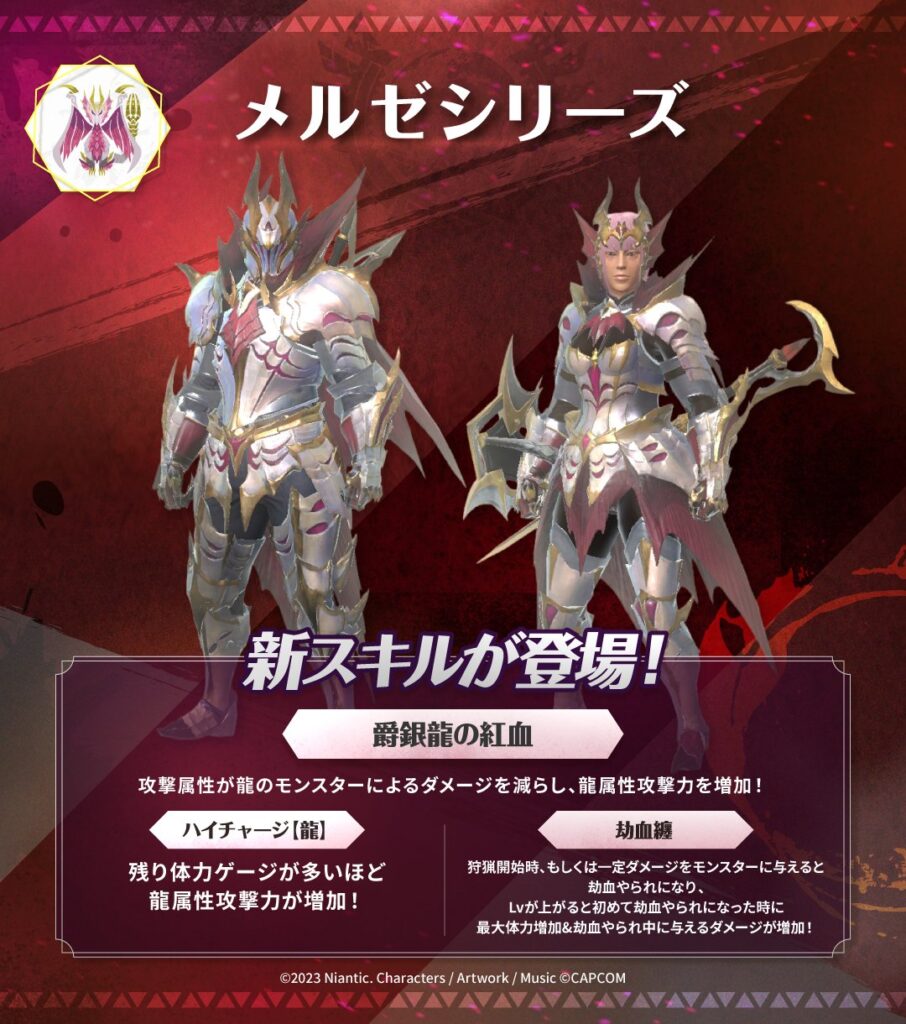 モンハン公式Xより、古龍メル・ゼナの防具「メルゼシリーズ」の一覧とスキル内容が発表されました!!