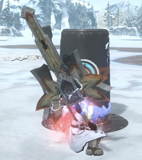 - (斧)→(剣)変形斬り※属性強化回転斬り含む