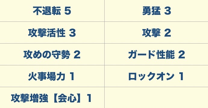 ぶっちゃけ「チェンジブースト」や「闘気活性」などに変えると火力がもう少し上がるので、そっちの方がいいと思います。